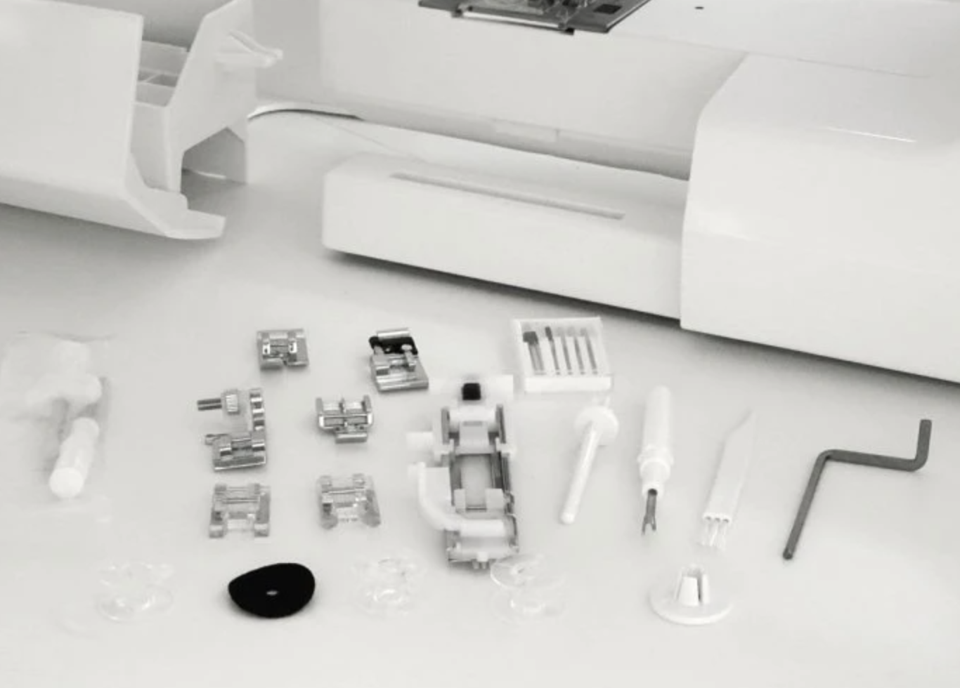 - 19 Diseños: 10 dibujos automáticos, 8 superautomáticos incluyendo 2 festones y 1 Ojal.