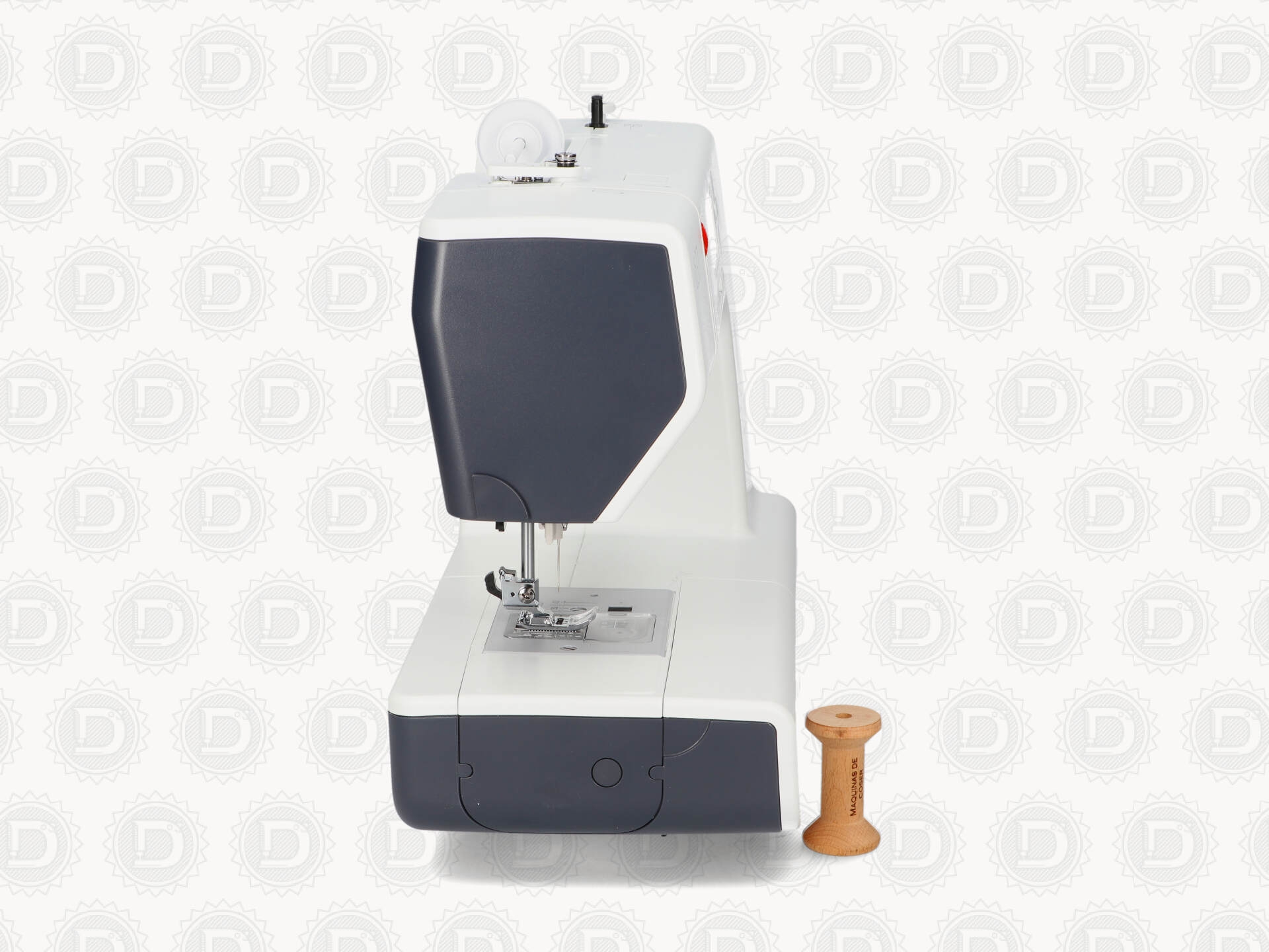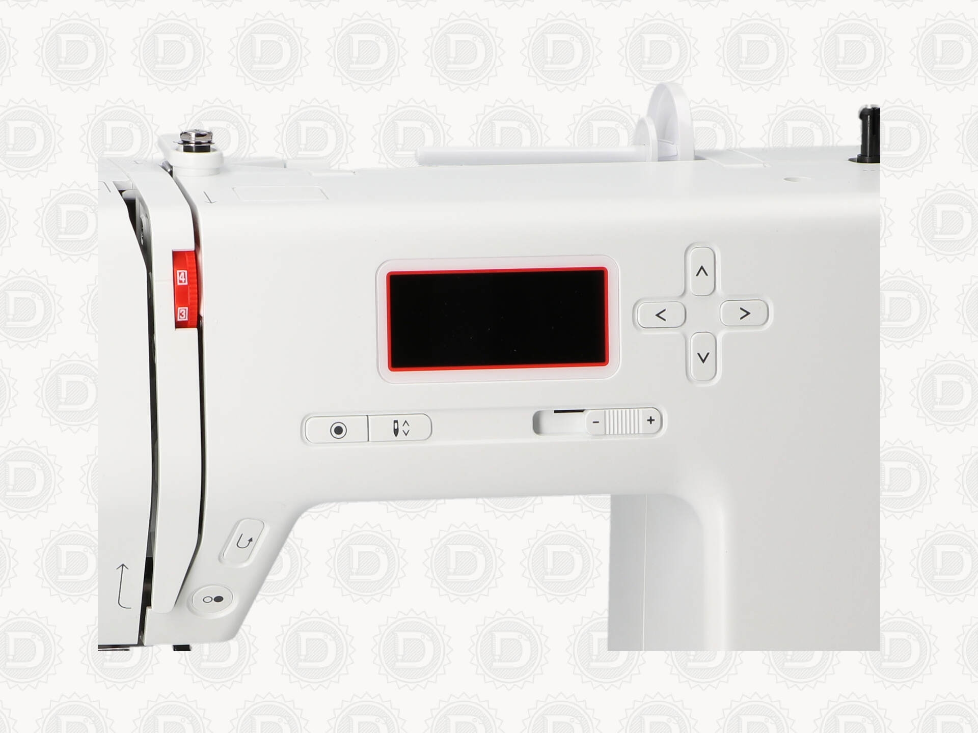 Es una máquina electrónica de fácil manejo, no es necesario el pedal para coser, cuenta con un botón start/stop que nos permite manejarla con solo pulsar este botón, estado así más pendientes de que nuestras manos guíen la tela para que no nos quede una costura torcida, graduaremos su velocidad con un botón deslizante, el cual podremos más cerca del + o del – dependiendo de las necesidades de cada momento. También cuenta con el botón posicionador de la aguja para que seleccionemos en cada momento como queremos que quede la aguja, si con la aguja abajo o arriba, esto depende en gran medida de la labor que estemos realizando, es especialmente útil cuando estamos haciendo giros, en los que es necesario que la aguja acabe abajo para así volver a iniciar la costura donde habíamos parado y que la puntada continue perfecta.