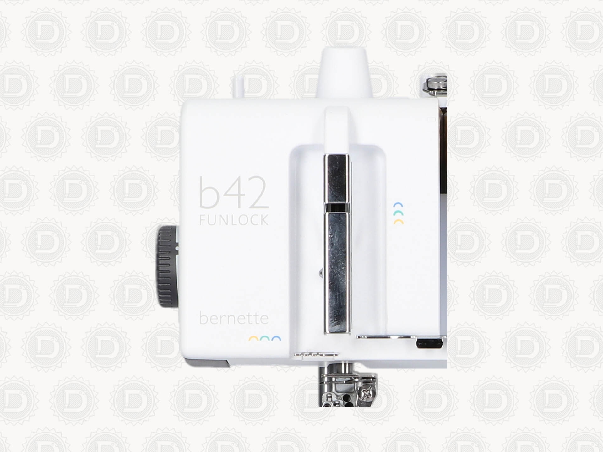 Fácil enhebrado gracias a sus vías de enhebrado con código de color. Todo ello facilitado por las vías de enhebrado con código de color y el enhebrador automático de la lanzadera inferior. Solo necesitas seguir los símbolos de color y ya tendrás enhebrada tu bernette Funlock 42.