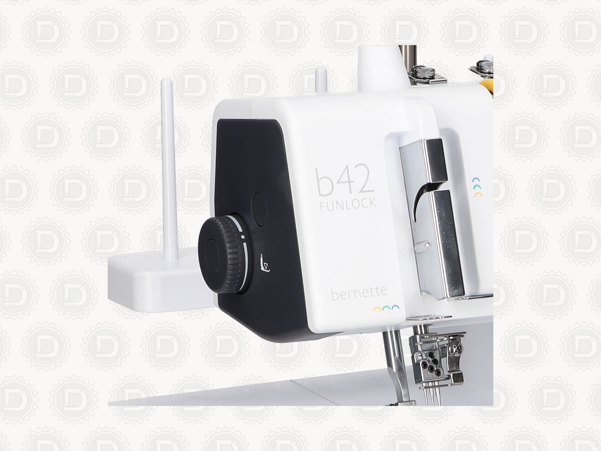 Con numerosos accesorios para una costura más placentera. Podrás guardar los accesorios de mayor uso en la tapa de la lanzadera de la bernette Funlock 42, y así siempre los tendrás a mano.