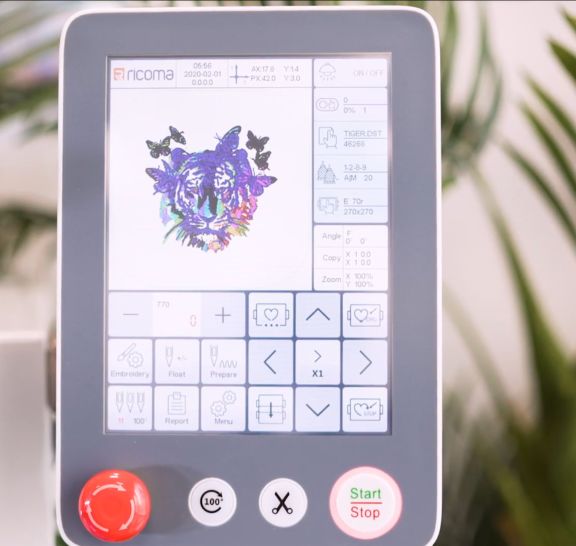 Panel de control con pantalla táctil a color de 8 pulgadas para una gestión intuitiva de diseños, parámetros de bordado y diagnósticos de la máquina.