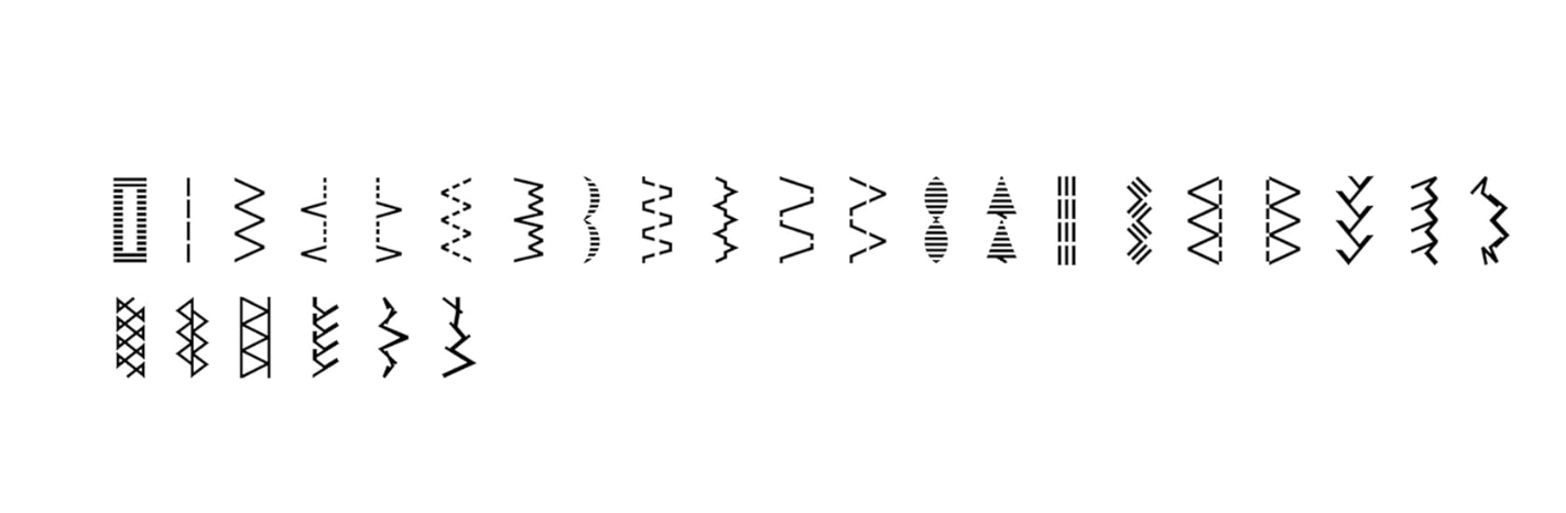 27 tipos de puntadas, desde funcionales hasta decorativas.