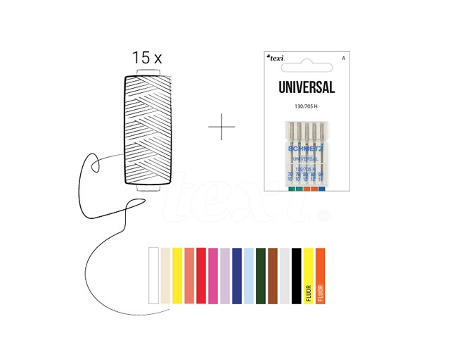 Texi Kit de 15 hilos + 1 blister de agujas variadas.