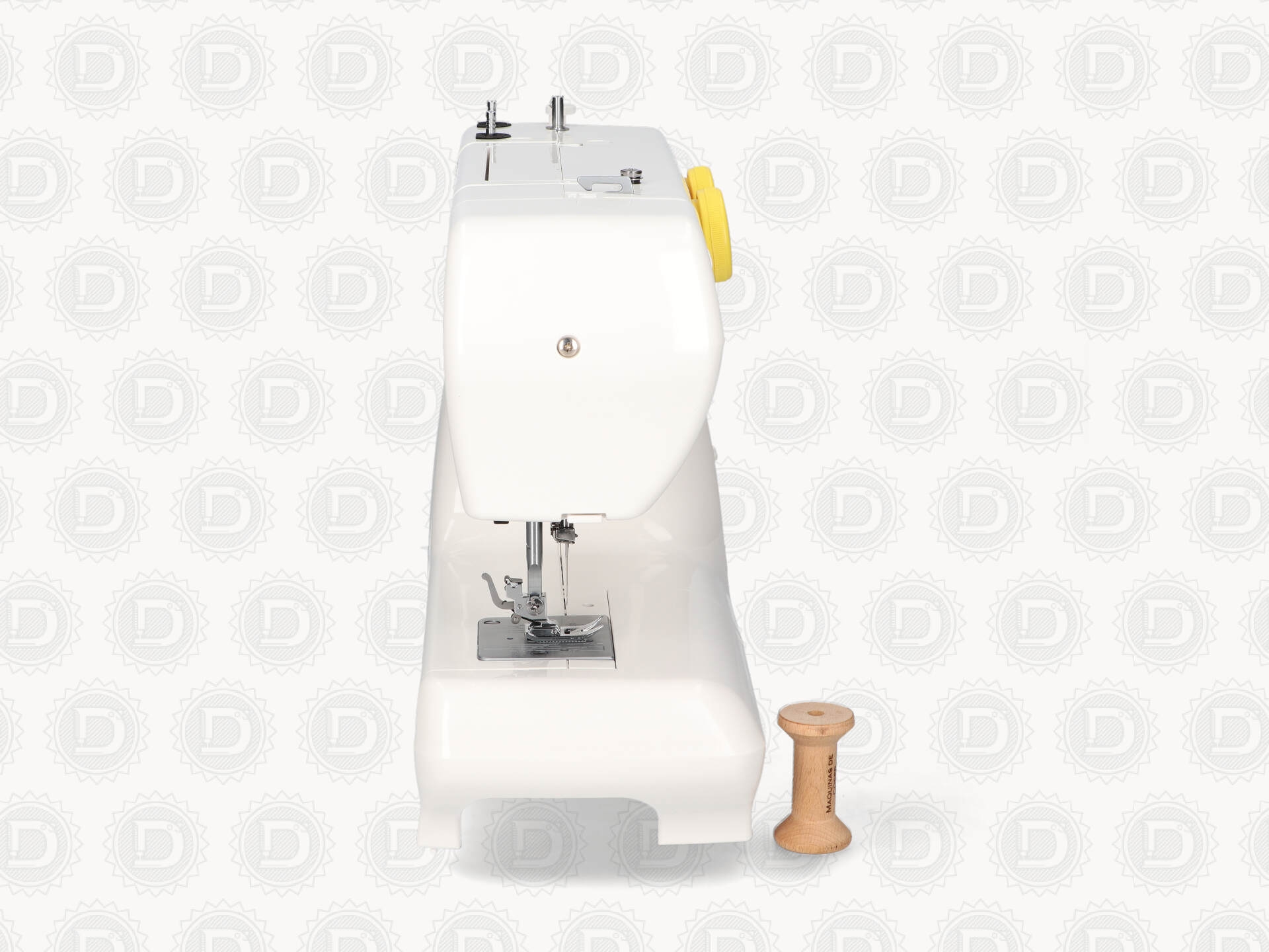 - Con prensatelas y portaconos metálicos.