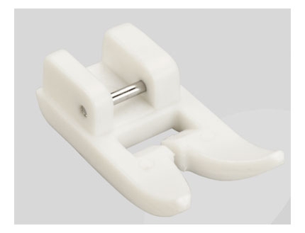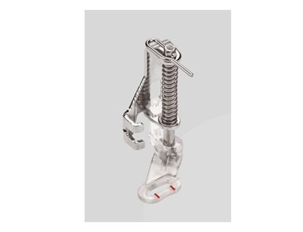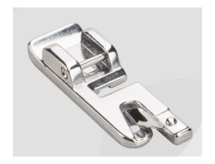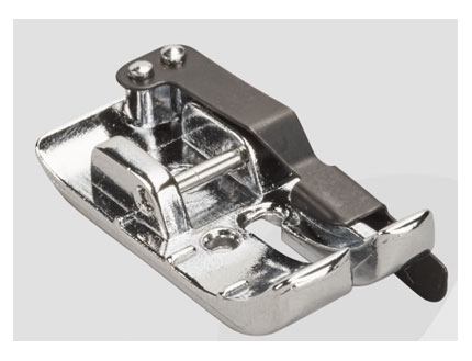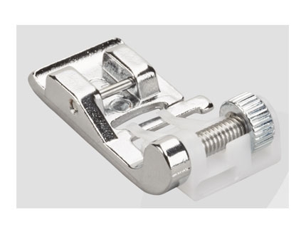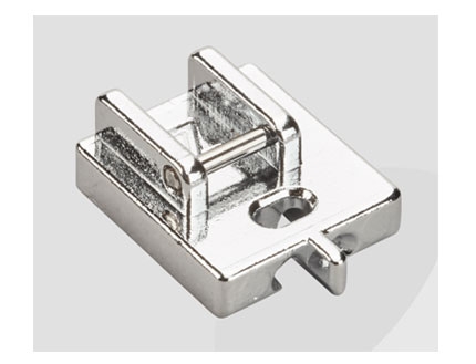 Prensatelas con guía para bordes estrechos: Este prensatelas con guía central facilita la costura superior al borde, dobladillos y pliegues; Muy útil para coser encajes o cintas, y para reforzar bordes. La guía te ayudará a lograr costuras paralelas a un borde.