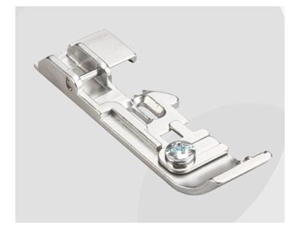 Prensatelas para cintas planas: Para colocar cintas planas de refuerzo o cordones.La guía se puede regular según el ancho de la cinta o cordón.
