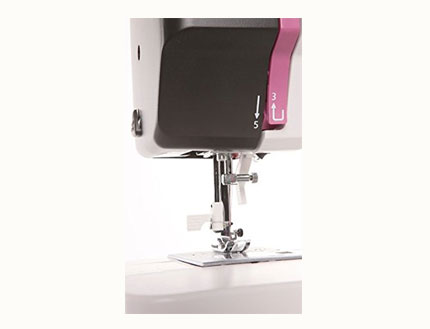 Cambiar la posición de la aguja para el ancho del zigzag pueda ser ajustado simplemente girando el selector de puntada. Para la puntada recta podemos seleccionar la posición en el centro o a la izquierda utilizando ell mismo selector.