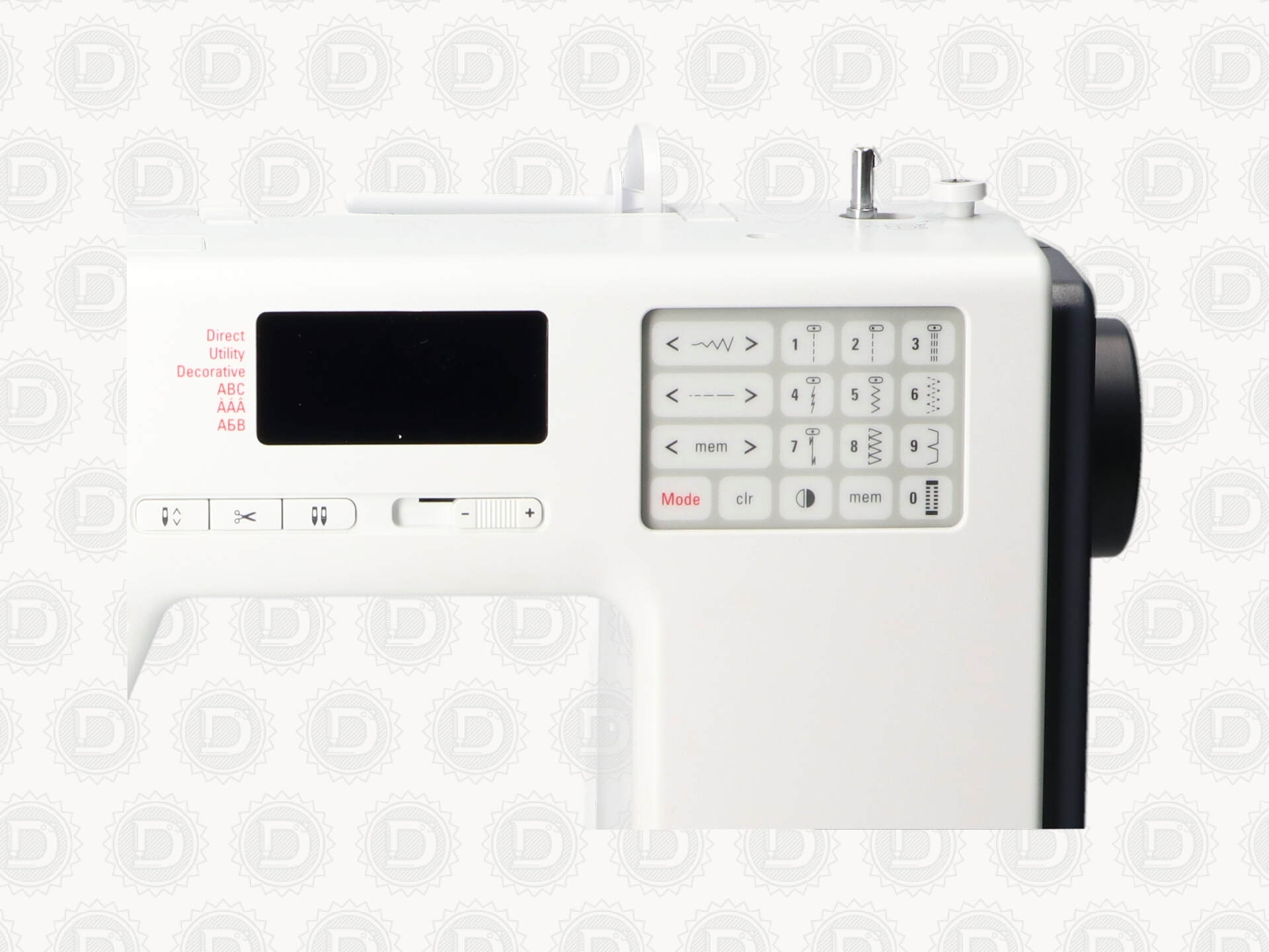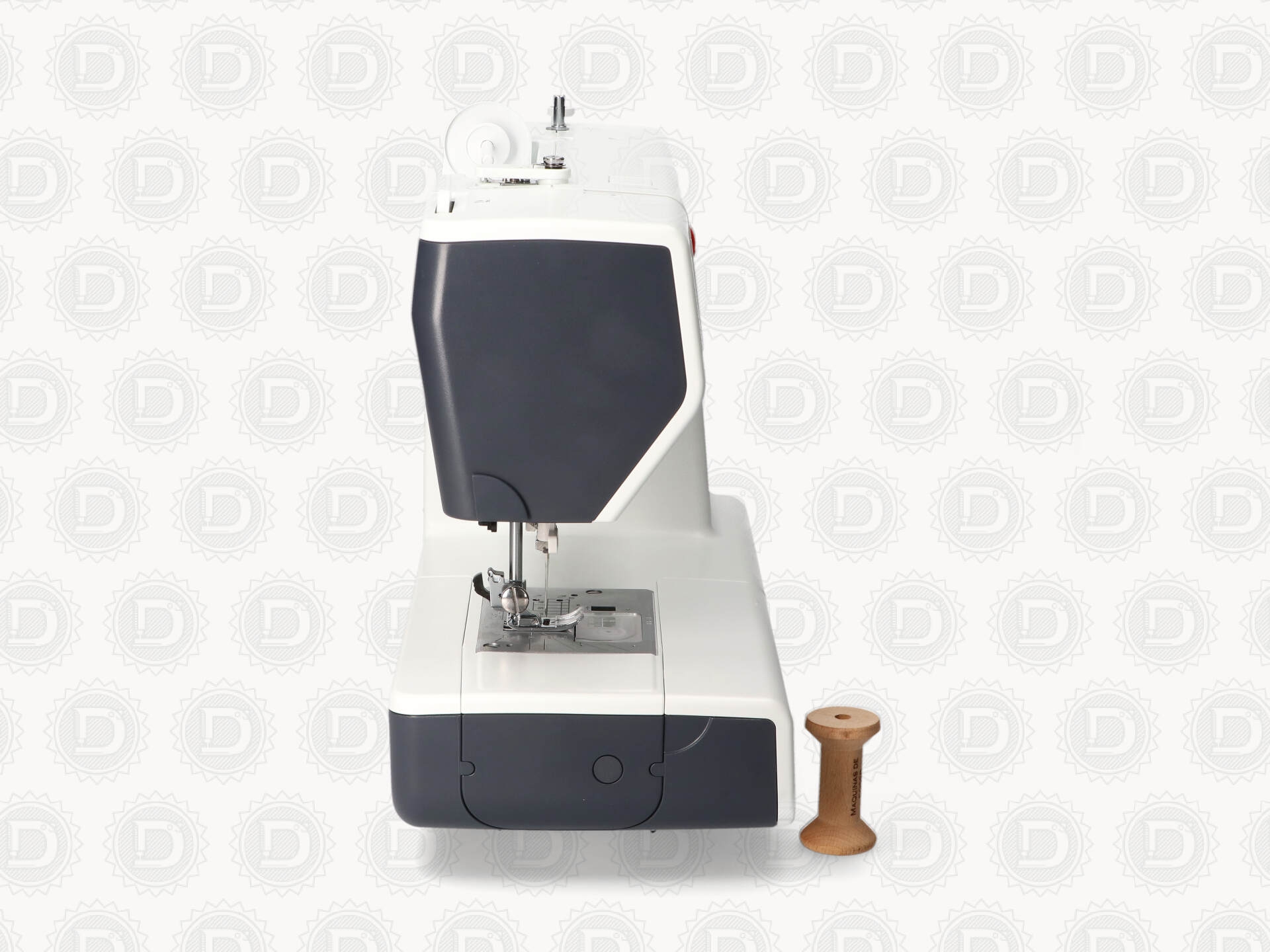 Es una máquina electrónica de fácil manejo, no es necesario el pedal para coser, cuenta con un botón start/stop que nos permite manejarla con solo pulsar este botón, estado así más pendientes de que nuestras manos guíen la tela para que no nos quede una costura torcida, graduaremos su velocidad con un botón deslizante, el cual podremos más cerca del + o del – dependiendo de las necesidades de cada momento. También cuenta con el botón posicionador de la aguja para que seleccionemos en cada momento como queremos que quede la aguja, si con la aguja abajo o arriba, esto depende en gran medida de la labor que estemos realizando, es especialmente útil cuando estamos haciendo giros, en los que es necesario que la aguja acabe abajo para así volver a iniciar la costura donde habíamos parado y que la puntada continue perfecta.