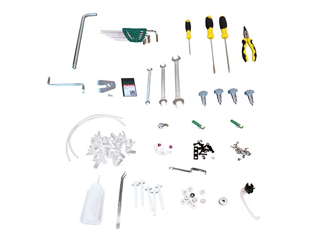 - Caja de herramientas (Llave Allen, destornillador, tijeras y kit de agujas DB X K5), repuestos de primera necesidad y pendrive de 8 GB con el manual de instrucciones.
