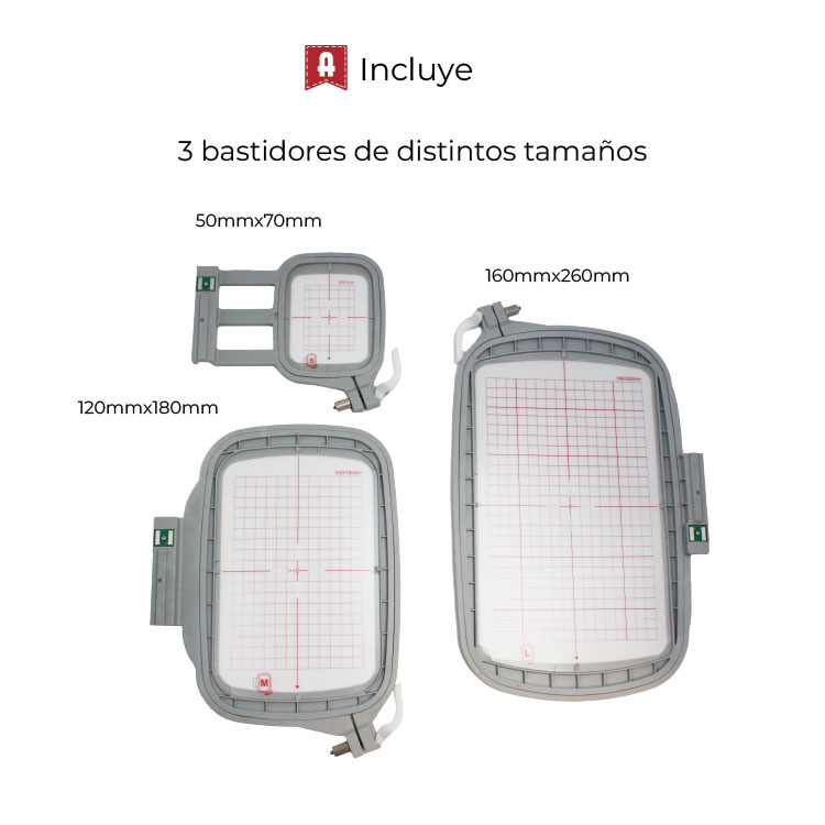 Área máxima de bordado: 160 x 260 mm (6,3” x 10,2”).