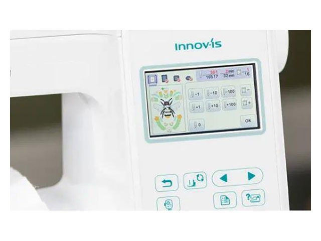 Toda la información de costura se muestra en una pantalla clara y retroiluminada. La Innov-is F540E está equipada con una pantalla táctil a color.