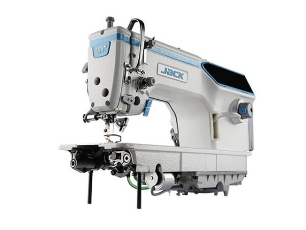 Máquina de coser industrial de una aguja con cortahílos, de doble arrastre por aguja y por dientes, con panel, sin carter de aceite, wiper, alzaprensatelas, motor incorporado… Direc Drive.
