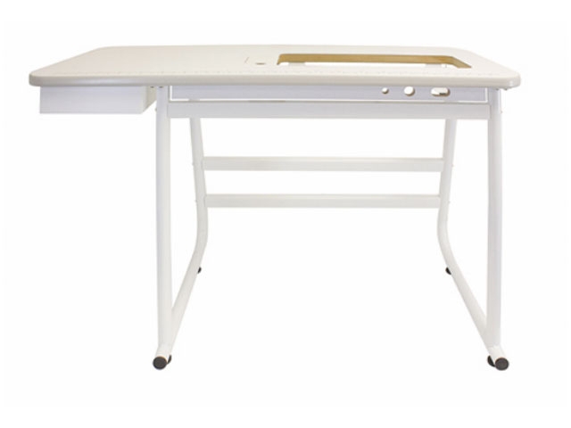 No se convierte en máquina de brazo libre, si nos fuese necesario puede comprarse una bancada a parte, es perfecta para maquinas de brazo largo , con un cajón. Nos proporciona una superficie de costura de 45¨ x 19¨¨ de profundidad y 30¨¨de alto. El material de la mesa es de fornica.