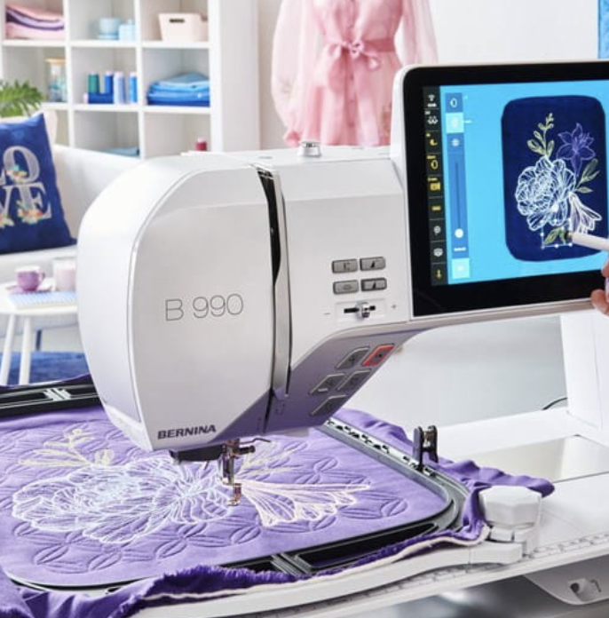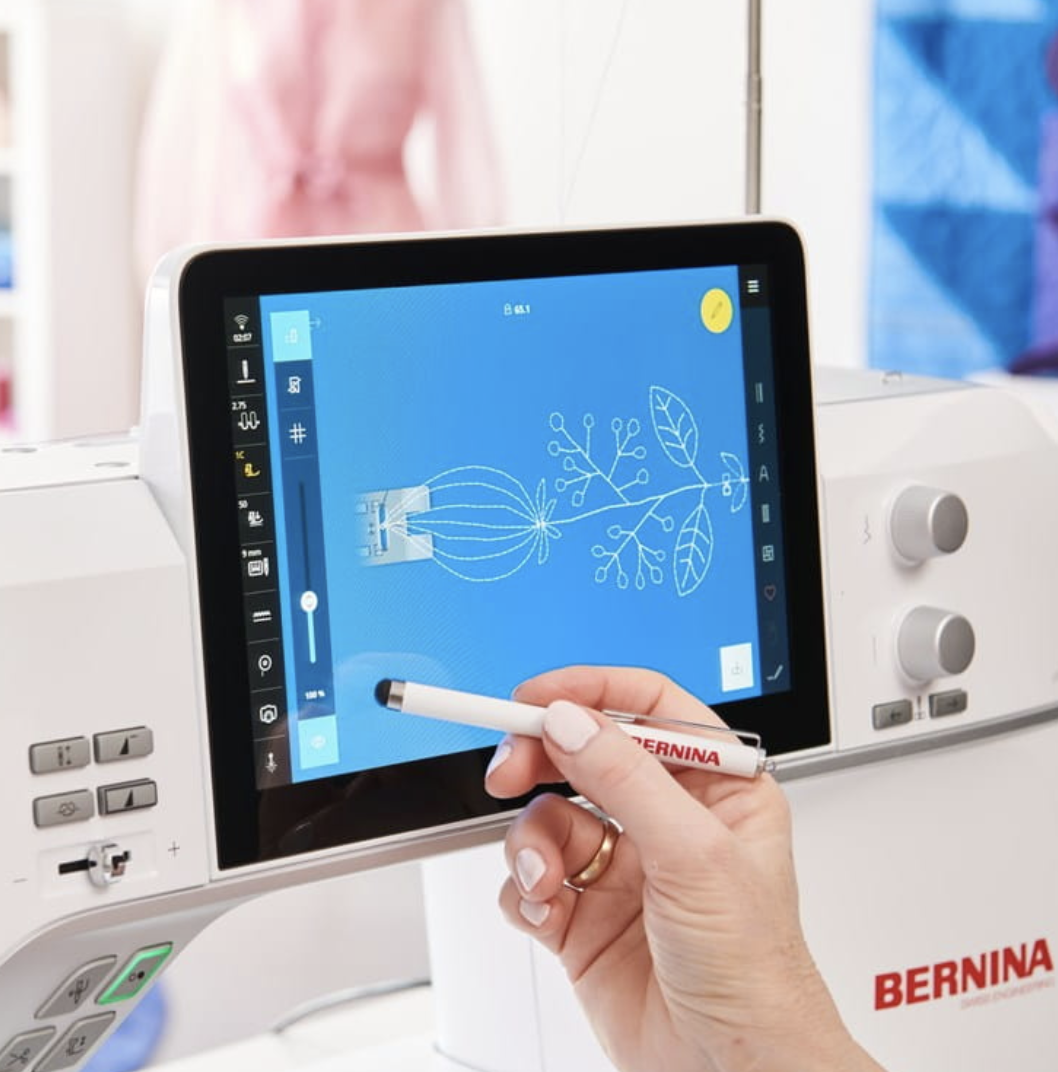 Equipada con una pantalla táctil gigante de alta resolución, la Bernina 990 ofrece un control total sobre cada detalle de tus proyectos. Desde la selección de puntadas hasta la edición avanzada de bordados, todo se gestiona de forma intuitiva, fluida y visual. Su nuevo sistema de diseño incorporado permite crear, ajustar y personalizar puntadas y patrones con una facilidad nunca antes vista.