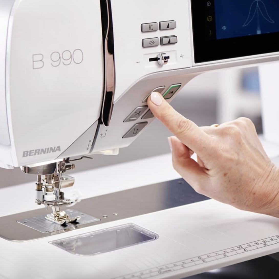 La Bernina 990 incorpora innovaciones únicas como el enhebrador automático mejorado, la tensión de hilo totalmente ajustada por sensores, el bastidor de bordado de gran formato y una compatibilidad absoluta con los accesorios de gama alta Bernina. Todo ello con la calidad suiza que caracteriza a la marca.