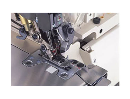 Equipada con sistema diferencial con regulación para género fino y medio, posicionador de aguja, regulador de velocidad, luz LED integrada y motor Direct Drive.