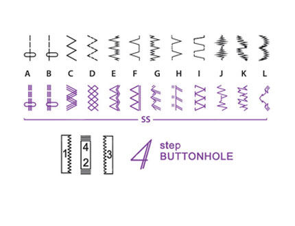 200 programas de puntadas( incluidas 9 tipos de ojales)