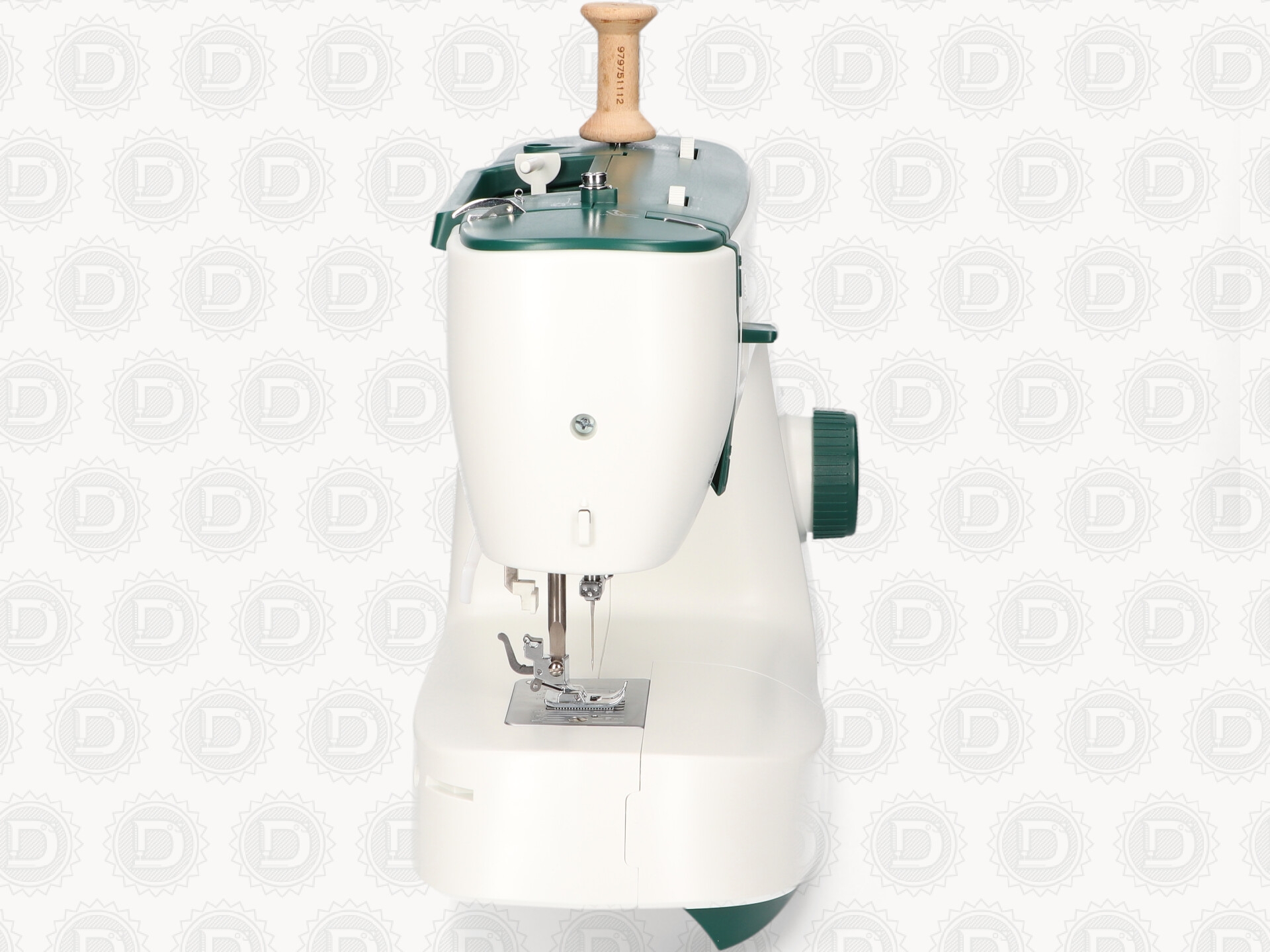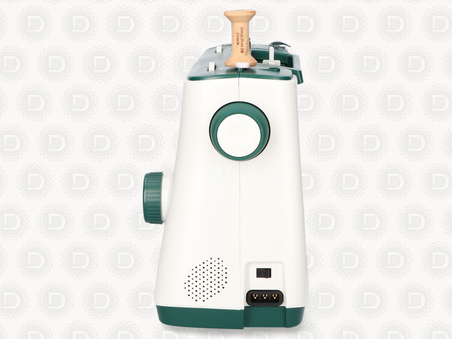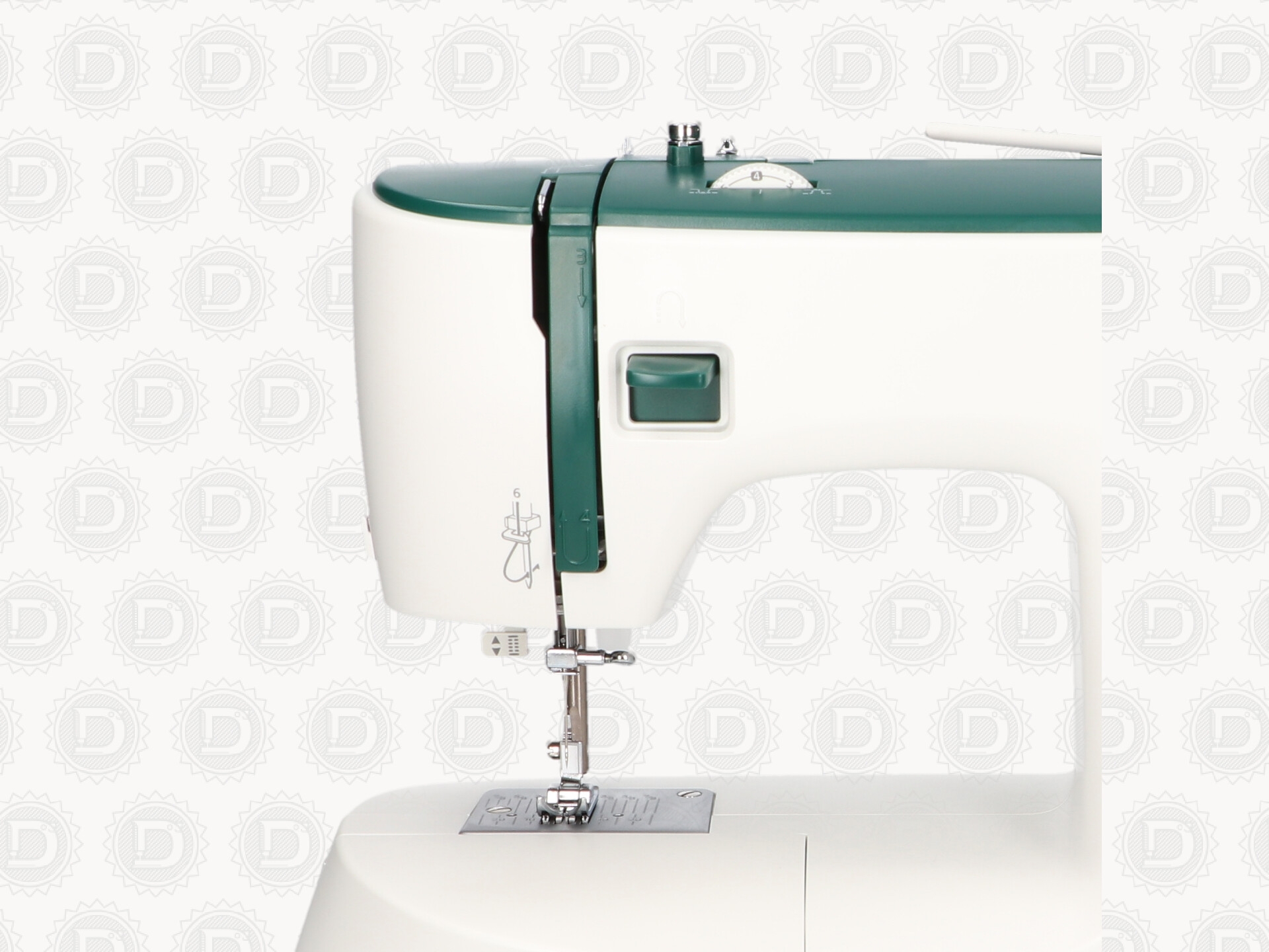 Máquina de coser mecánica básica, perfecta para iniciarse en la costura, ya que su sencillez de uso facilita el aprendizaje. Su diseño permite un ángulo de visión óptimo y una superficie de trabajo cómoda.