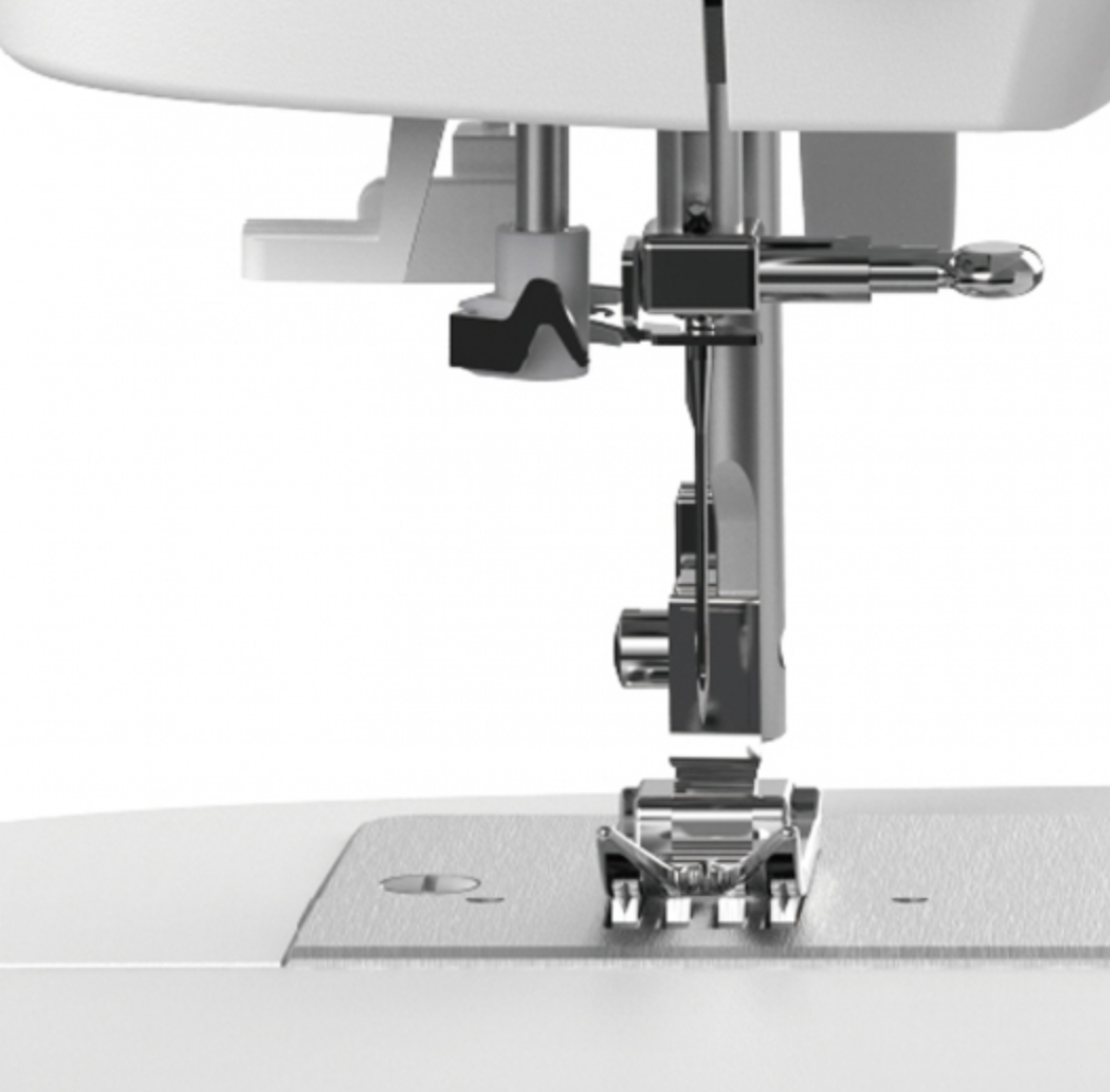 - Doble altura de prensatelas: Para trabajar con telas gruesas.