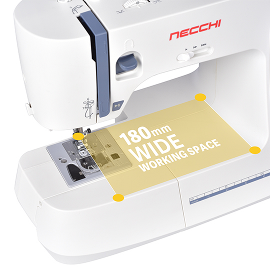 La Necchi NC-59QD es una máquina de coser electrónica versátil, ideal para quienes buscan precisión y facilidad de uso. Ofrece 59 puntadas, incluidas puntadas decorativas, utilitarias y elásticas, lo que la convierte en una máquina ideal para proyectos creativos y funcionales. Además, cuenta con ojal automático en un solo paso, enhebrador automático, y pantalla LCD que facilita la selección de puntadas. Incluye una mesa extensible, perfecta para proyectos más grandes como acolchados.