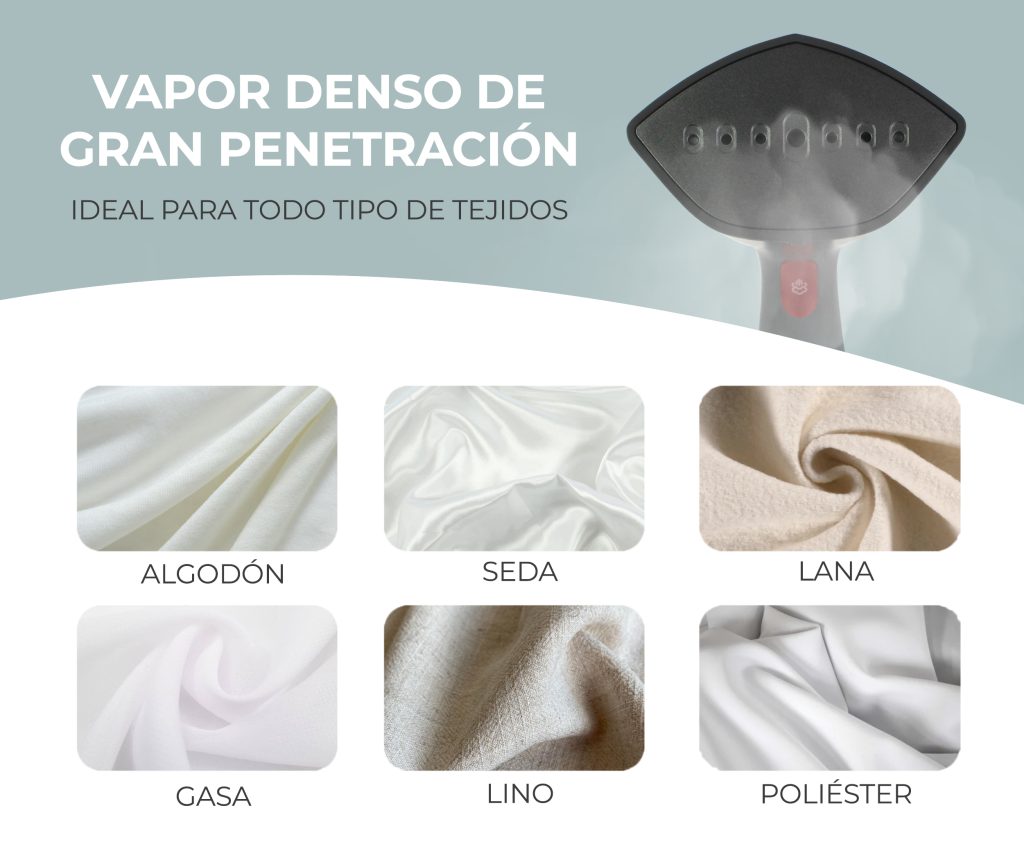 Ayuda a abrir la fibra y permite que el vapor penetre mejor en telas como abrigos, chaquetas o tapicerías.