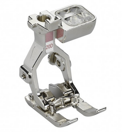 Prensatelas Nº20 D: es un prensatelas abierto para bordar con la máquina de coser. Perfecto para hacer bordados Richelieu (similar a los encajes) u circulares, ademas de repasar líneas y patrones. Con el también podremos colocar cintas y aplicaciones.