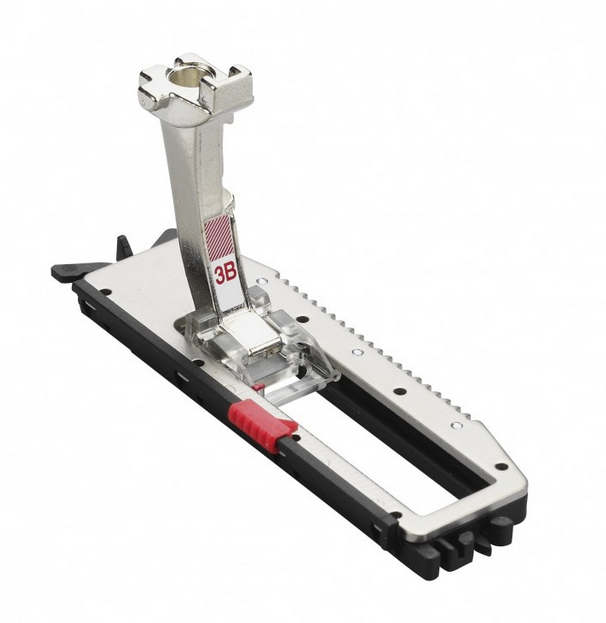 Prensatelas Nº 3B: con guía de carro el prenatales nº3B permite coser fácilmente ojales de idéntica longitud. Se ajusta primero la longitud del ojal manualmente, lo que hace que todos los ojales sean iguales, hasta que nosotros cambiemos la longitud.