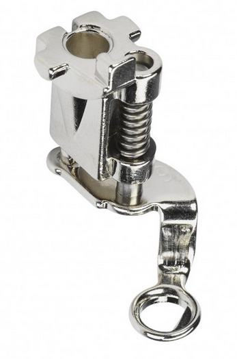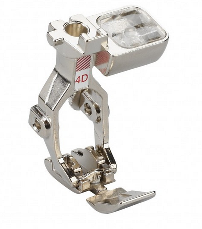 Prensatelas Nº 4D: para cremalleras, gracias a su estrecho dedo central el prenatales se acerca mucho a los dientes de la cremallera puede coserse con facilidad y dejando un acabado perfecto. También es idóneo para coser ribetes y bandas de botones de presión, así como para pespuntear orillos.