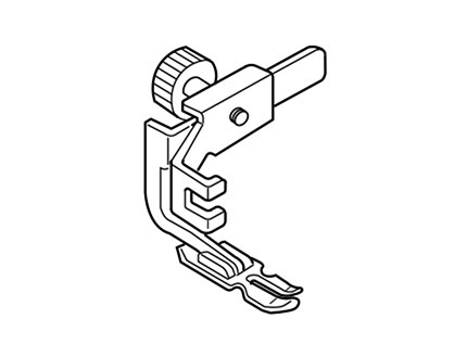 Este prensatelas se puede instalar de manera a coser cada uno de los lados de la cremallera. El borde del prensatelas guía la cremallera para asegurar que este en el centro.