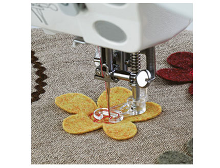 Este prensatelas tambien es conocido como prensatelas de bordado, este prensatelas de zurcido se usa a la hora de realizar un bordado libre o un zurcido para garantizar una puntada perfecta, minimizar los saltos de puntada y el fruncido, y también para proteger sus dedos mientras mueve la tela libremente debajo de la aguja. Para usarlo libremente hay que bajar los dientes de la máquina.
