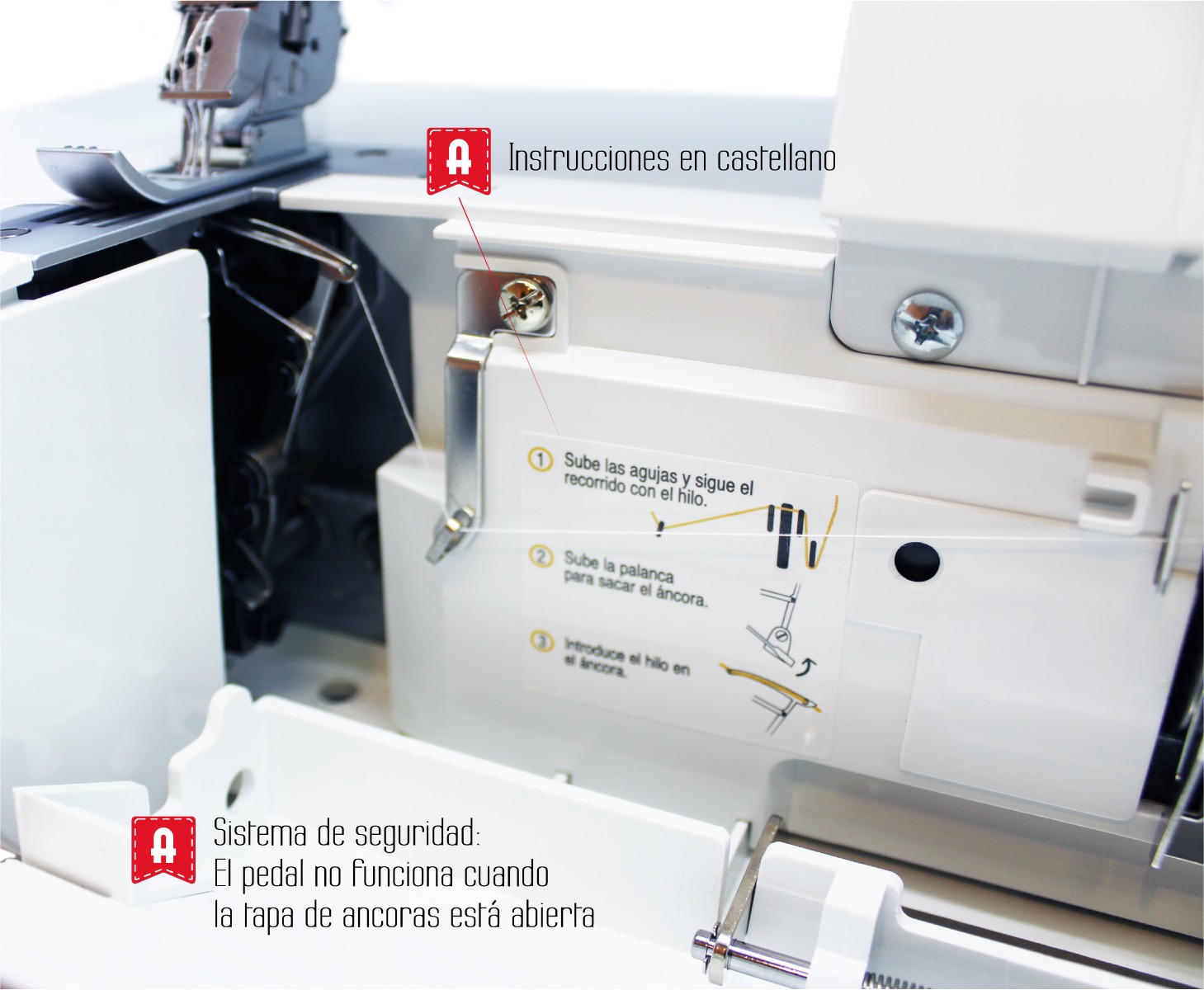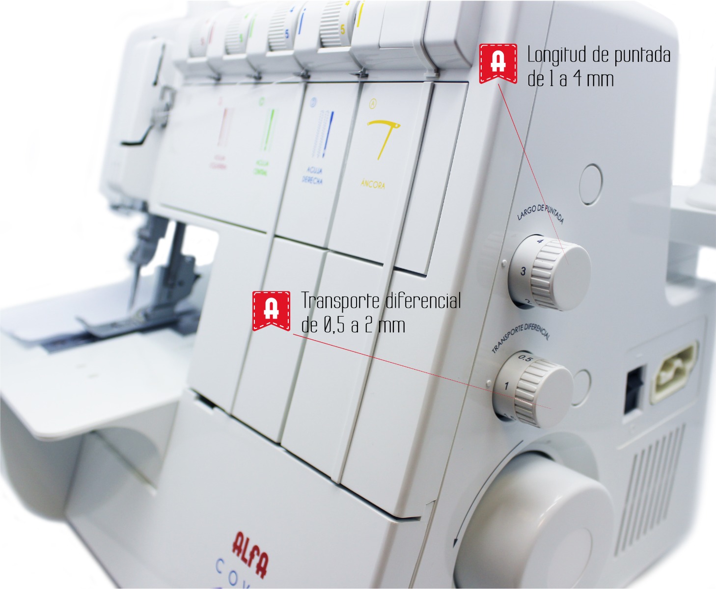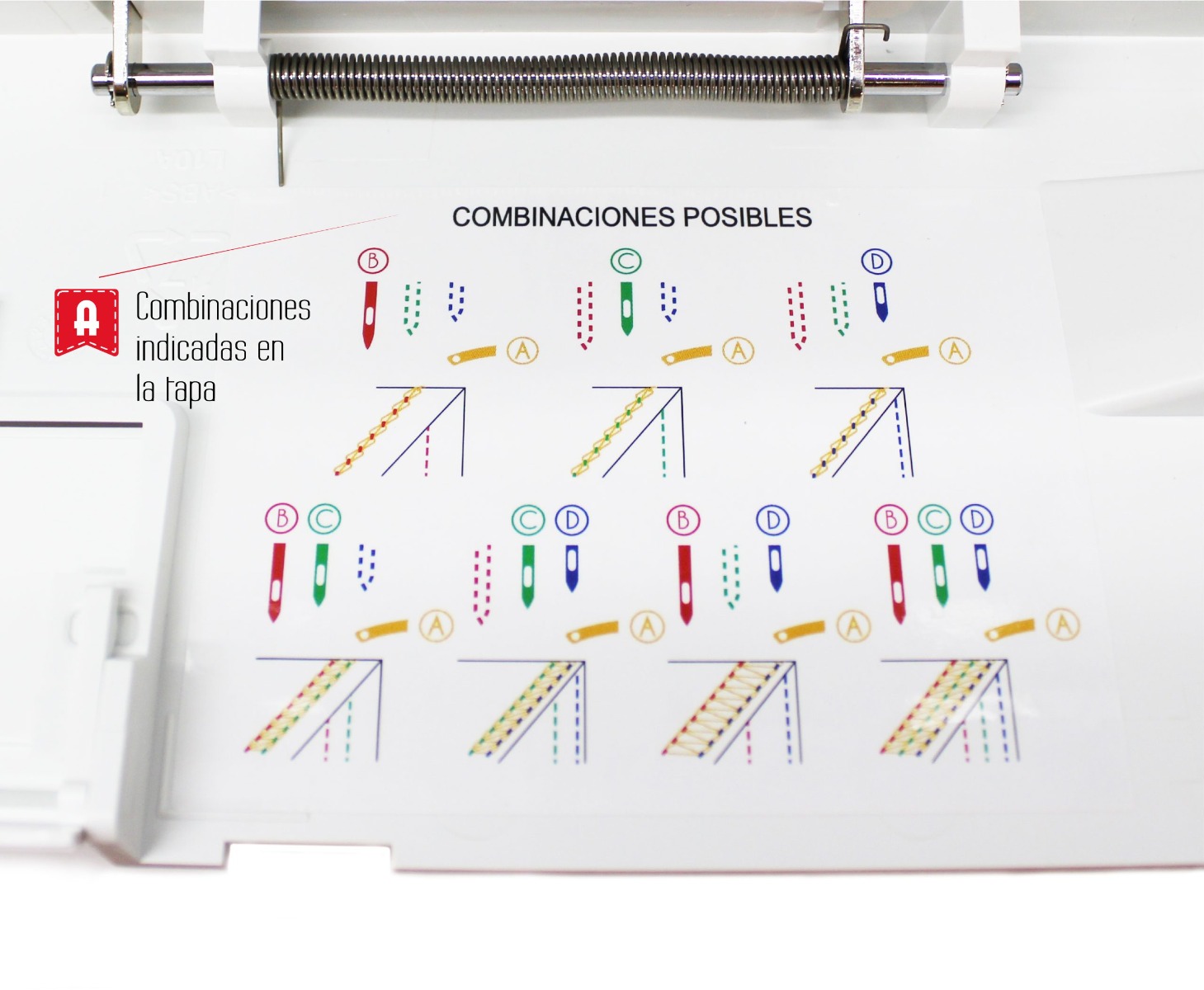 La Alfa Cover Style es la recubridora perfecta si eres modista, tienes una tienda de arreglos o si buscas u acabado profesional y de aspecto industrial en todas tus prendas elásticas (punto, camisetas de algodón, bikinis, lencería, etc). Con ella vas a poder coser dobladillos, pespuntes decorativos, costuras planas, acabados con elásticos y ribetes, etc. Como novedad respecto al resto de recubridoras del mercado, la Alfa Cover Style incluye, en la propia máquina, una pegatina con instrucciones con textos en castellano e iconos descriptivos para un enhebrado más fácil. Además, incluye también descripciones en castellano indicando todas las combinaciones posibles de puntadas.