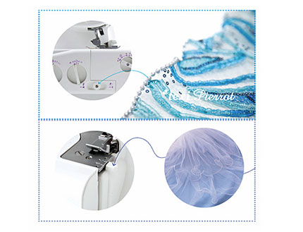 - Ajuste preciso de la longitud de punta para el dobladillo enrollado