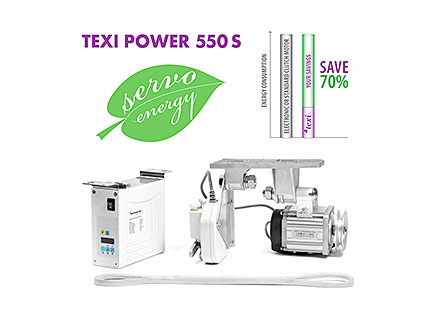 TEXI POTENCIA 550 S – ahorro de energía, de una sola fase de 220 – 240 V AC Servo motor con una potencia de 550W. Funciona sólo cuando la máquina esté cosiendo (sin funcionamiento en vacío). A pesar de que su poder supera previamente motores de embrague electrónicos y estándares usados, se ahorra 70% de energía.