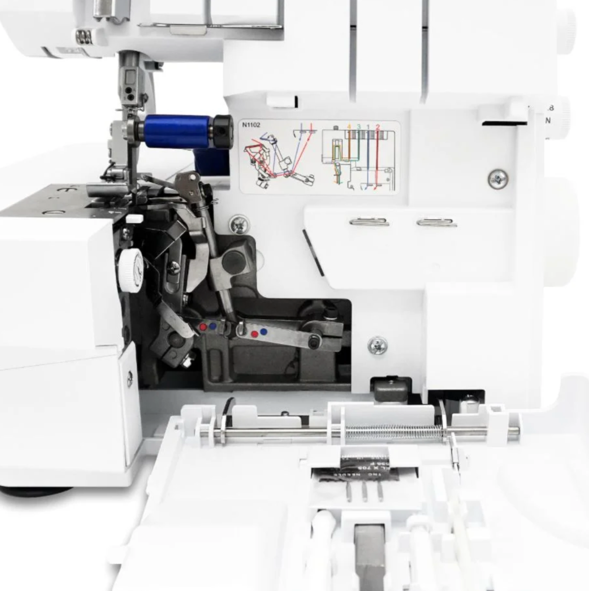 Gracias a su alimentación diferencial ajustable, cuchilla superior retráctil y convertidor de 2 hilos, garantiza un manejo preciso y una gran facilidad de uso. Con una velocidad de 1.300 puntadas por minuto y la posibilidad de ajustar la longitud y el ancho de la puntada, es perfecta tanto para principiantes como para usuarios experimentados que buscan resultados de calidad profesional.