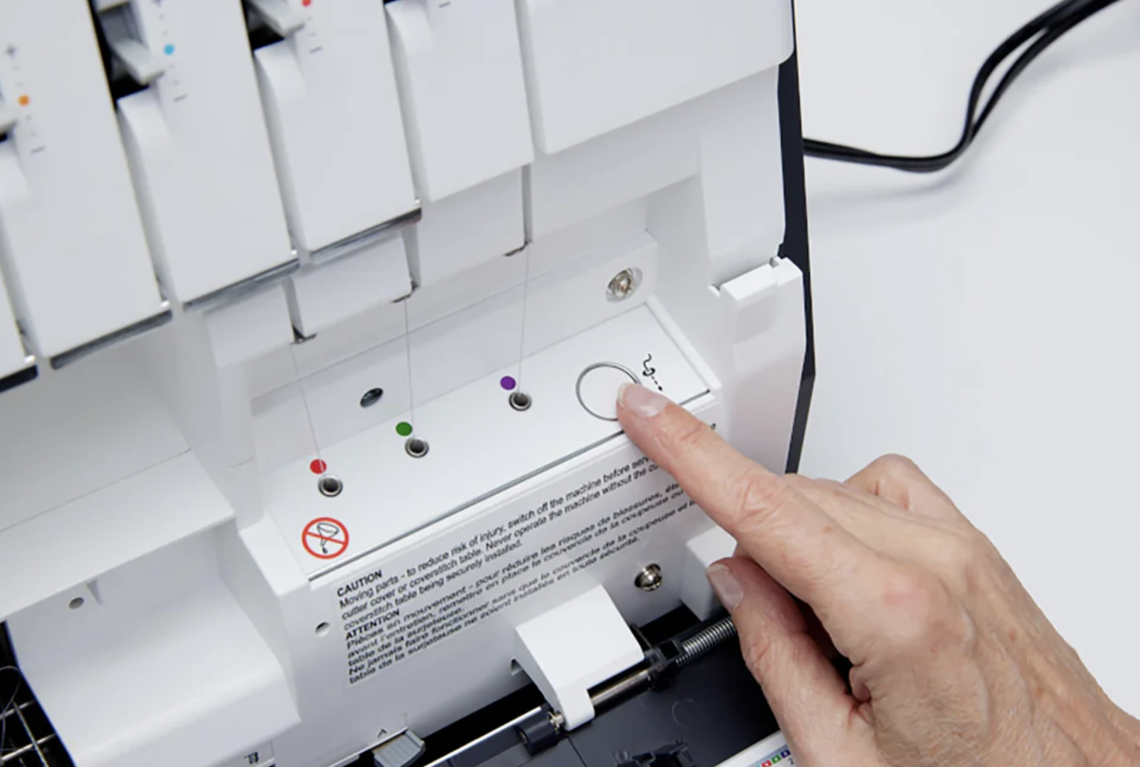 - Enhebrado por aire automático: Simplifica el proceso de enhebrado de los ganchos con un solo botón.