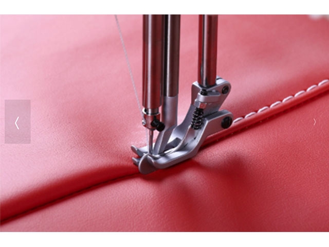 Máquina de coser industrial de triple arrastre y una aguja. Con un largo de puntada de hasta 9mm, gran espacio entre la aguja y la maquina de 255×103 mm, indicada para generos medios y gruesos. 16mm de altura extra del prensatelas, remate de puntada al principio y al final de la costura.