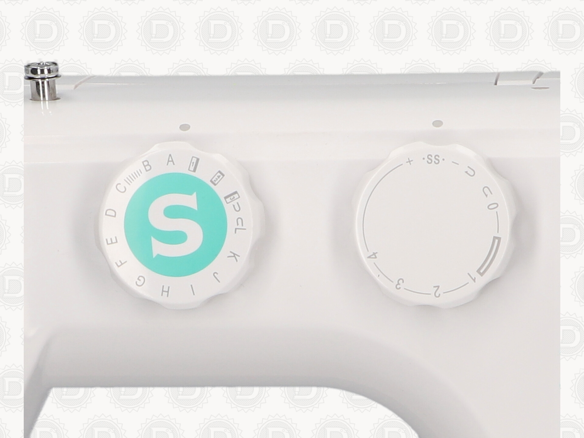 Selector del largo de puntada y ancho del Zig Zag. Dientes retráctiles con sólo accionar la palanca, se pueden ocultar los dientes permitiendo realizar el bordado libre y costura de botón.