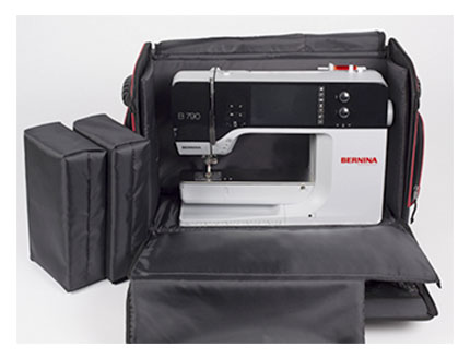 El trolley XL de las series 7 y 8 de BERNINA es resistente y ligero. Al estar completamente acolchado, y gracias al material exterior de alta calidad, proporciona una protección completa para su máquina de coser.