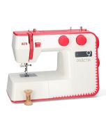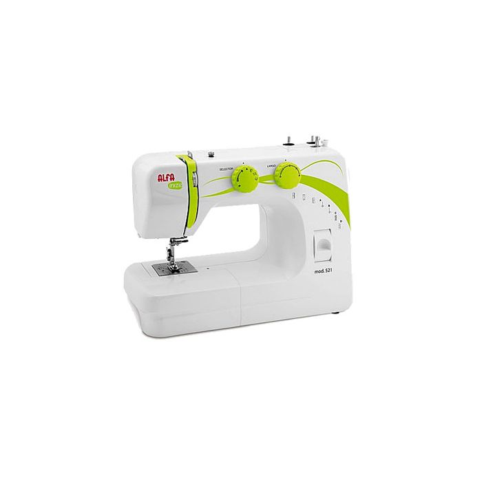 La máquina de coser Alfa Inizia 525 es una máquina mecánica de brazo libre, ideal para el aprendije de la costura. Consta de dos mando selectores uno para elegir la puntada deseada y otro para modificar si se desea el largo y ancho de esta, de fácil manejo y práctica para labores domésticas.