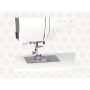 Es una máquina electrónica de fácil manejo, no es necesario el pedal para coser, cuenta con un botón start/stop que nos permite manejarla con solo pulsar este botón, estado así más pendientes de que nuestras manos guíen la tela para que no nos quede una costura torcida, graduaremos su velocidad con un botón deslizante, el cual podremos más cerca del + o del - dependiendo de las necesidades de cada momento. También cuenta con el botón posicionador de la aguja para que seleccionemos en cada momento como queremos que quede la aguja, si con la aguja abajo o arriba, esto depende en gran medida de la labor que estemos realizando, es especialmente útil cuando estamos haciendo giros, en los que es necesario que la aguja acabe abajo para así volver a iniciar la costura donde habíamos parado y que la puntada continue perfecta.