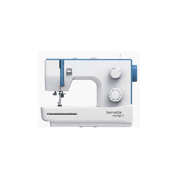 La máquina de coser Bernette sew&go 5 es también un modelo mecánico. Es una máquina de coser de brazo libre con 23 puntadas diferentes, incluyendo un ojal, se puede alargar ancho de puntada hasta 5 mm .