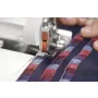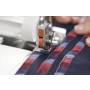 El enhebrador de agujas integrado y a la función de parada de la aguja arriba facilitan el enhebrado de las agujas. Puedes pasar fácilmente de una costura overlock a un dobladillo enrollado o una costura plana en un abrir y cerrar de ojos, ya que el hilo permanece en la misma trayectoria de enhebrado.