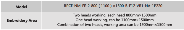 1. Máquina de bordar computarizada de área grande de dos cabezas de 12 colores, más adecuada para la aplicación de bordado de área grande de productos textiles para el hogar. Dos cabezales funcionan al mismo tiempo, el área de bordado de cada cabezal es de 800 mm × 1500 mm. Cuando cualquiera de los cabezales está cerrado, el área de bordado de un solo cabezal puede ser de 1100 mm × 1500 mm, a través de la combinación de dos cabezales, puede alcanzar un área de bordado súper grande de 1900 mm × 1500 mm, que es más eficiente y preciso que la combinación de bastidor de bordado tradicional & método invertido.