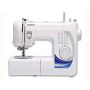 Máquina de coser doméstica, brazo libre, ojal automático en un solo tiempo, 27 costuras preprogramadas, ajuste de zigzag y largo de puntada, Desembrague automático, ajuste de los labios del ojal mediante botón. Luz led para evitar el calor de la bombilla convencional. Enhebrador automático.