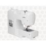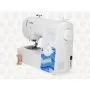 Con selector de diseños que gira en sentido circular para seleccionar el diseño que queremos realizar. Consta de 2 botones para ajustar el largo y ancho de la puntada.