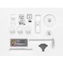 Prénsatelas, canillas, agujas, portacarretes horizontales, destornillador, pedal, funda guarda polvos.