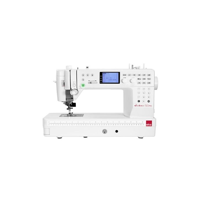 La Elna Excellence 720 Pro es una máquina de coser profesional diseñada para aquellos que buscan rendimiento, precisión y funciones avanzadas para proyectos de costura y acolchado. Con una velocidad máxima de 1,200 puntadas por minuto, permite realizar trabajos rápidamente. Cuenta con 200 puntadas, incluyendo puntadas utilitarias y decorativas, así como 10 tipos de ojales automáticos en un solo paso. Su gran área de trabajo con una extensión de 255 mm a la derecha de la aguja es perfecta para proyectos grandes. También incluye cortahilos automático, enhebrador integrado, y una mesa extensible.