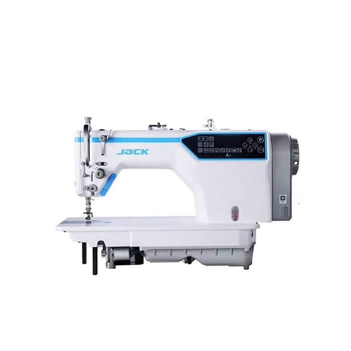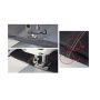 Equipada con cortahílos, cárter cerrado de aceite y cabezal semi-seco, panel de programación, condensación de puntadas, pulsador de puntadas, regulador de longitud de puntada electrónico, remate electrónico silencioso, instrucciones habladas, alzaprensatelas automático, ajuste electrónico de los dientes de arrastre, luz LED integrada, sistema IoT y motor Direct Drive. Incorpora un sistema cortahílos doble, dejando la hebra del hilo inferior a 3,5 mm.