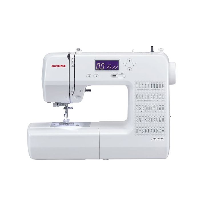 La Janome 1050DC le ofrece costura cómoda con 50 puntadas preprogramadas, incluidos 3 tipos de ojales completamente automáticos diferentes.
