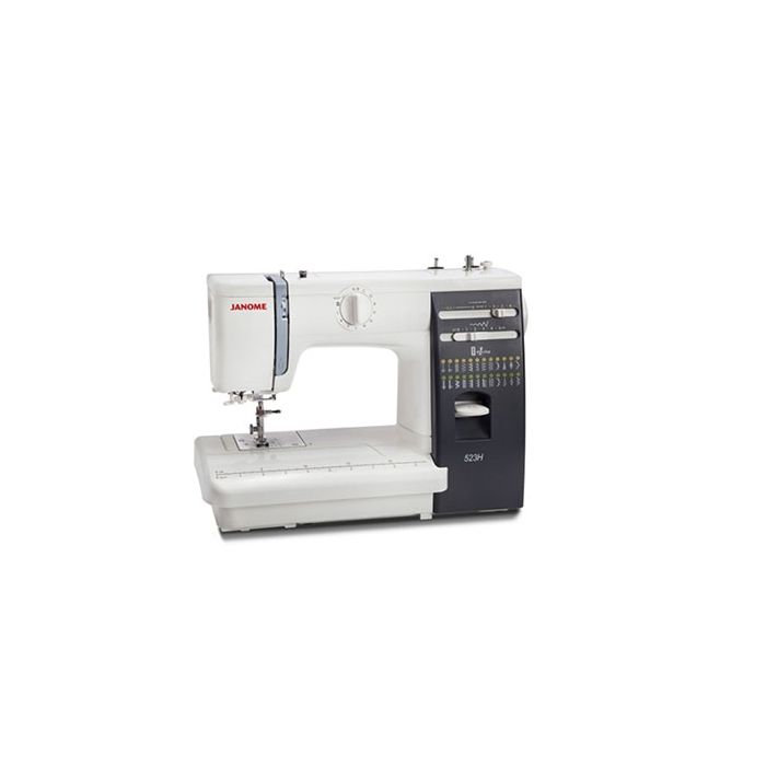 Máquina doméstica Janome 523H, es una máquina pensada para modistas y personas que hacen arreglos por las caracteristicas de su estructura y puntadas seleccionadas para géneros gruesos. Velocidad maxima de 860ppm.